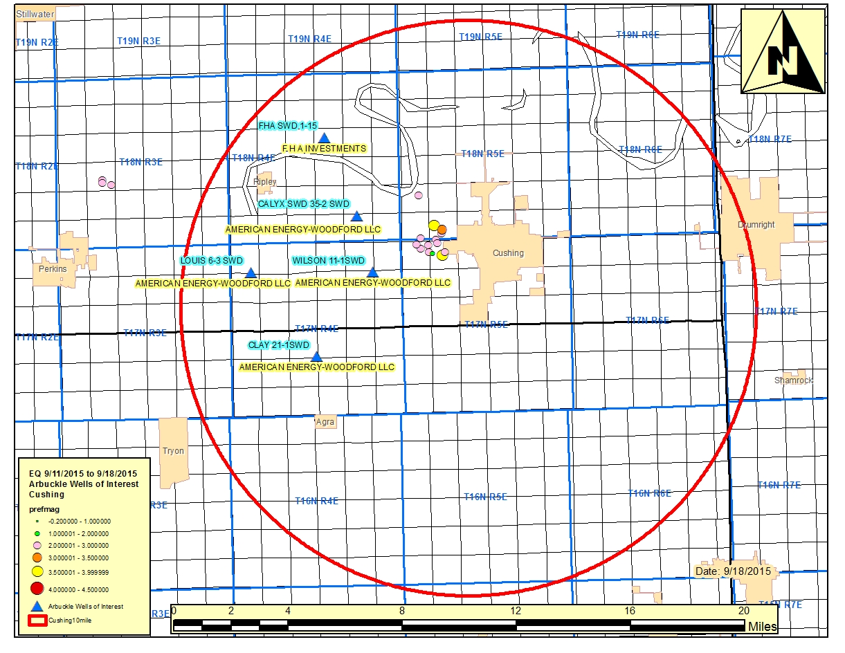 On Friday, October 16, 2015, the Oklahoma Corporation Commission’s Oil and Gas Conservation Division (OGCD) added additional oil and gas wastewater disposal wells to its action plan for the Cushing, Oklahoma area. The goal of the plan is to reduce the risk of induced earthquakes in Cushing area by changing the operations of the specified disposal wells. This latest action now calls for operational changes at a total of 13 disposal wells. Operators of 13 other disposal wells have been put on notice that changes may be needed in the future.